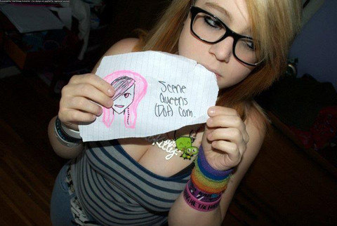 To be a ‘true scene kid’ you have to be different. Express yourself. Stand out of the crowd. Don’t be a clone of Katie Babyfayce, or Brookelle Bones, or even Vanna Venom. Be your own style. Show people you’re not like others, show them you’re a fun, colorful soul.